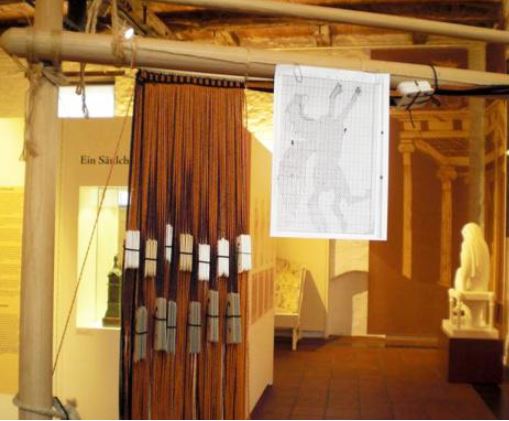 Die beiden Ansichten des Doppelgewebes auf dem Gewichtswebstuhl, Museum für Abgüsse, München. Ausführung: Ellen Harlizius-Klück
